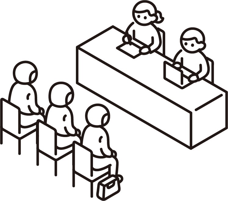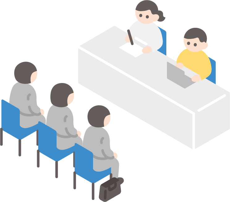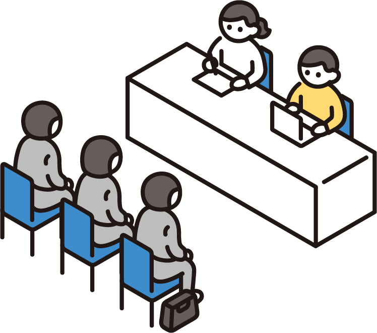 集団面接をしているアイソメトリックイラストです。就職活動。
