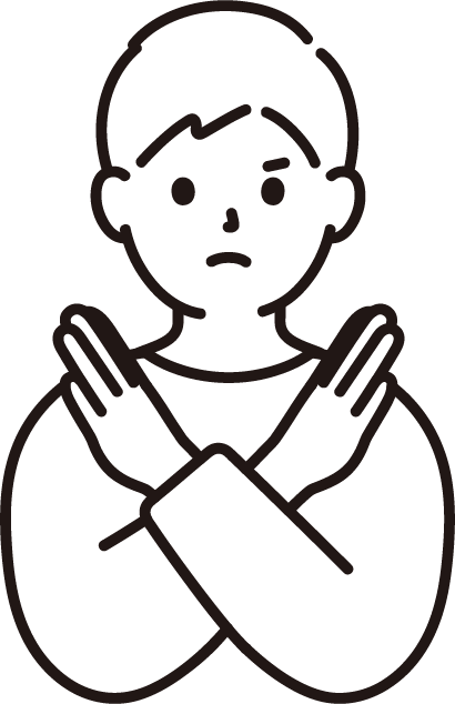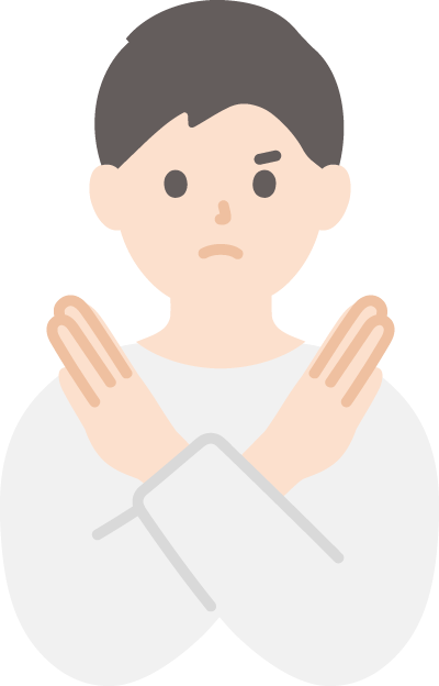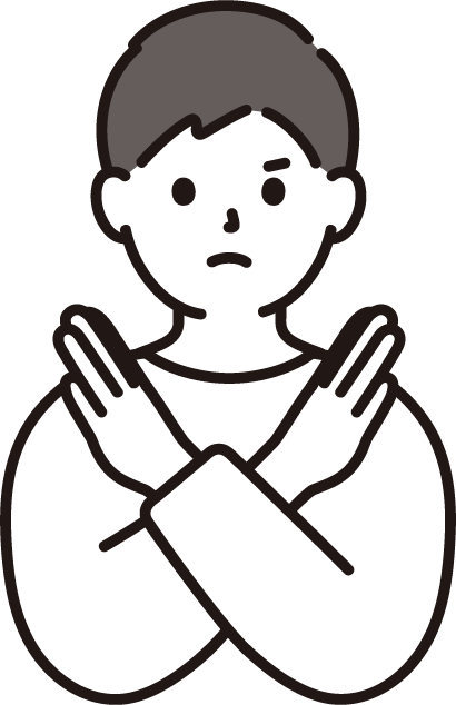 バツポーズをしている男性のイラストです。NO、断る、ダメ。