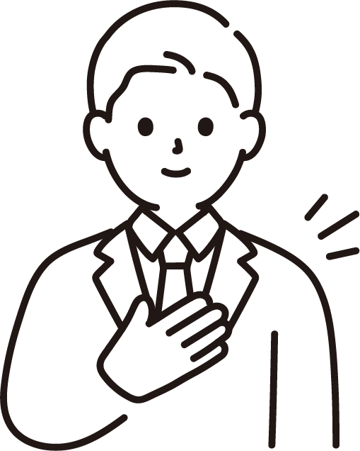 おまかせくださいのポーズをしているスーツを着たビジネス男性のイラストです。