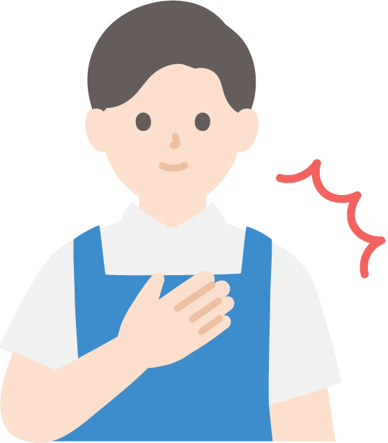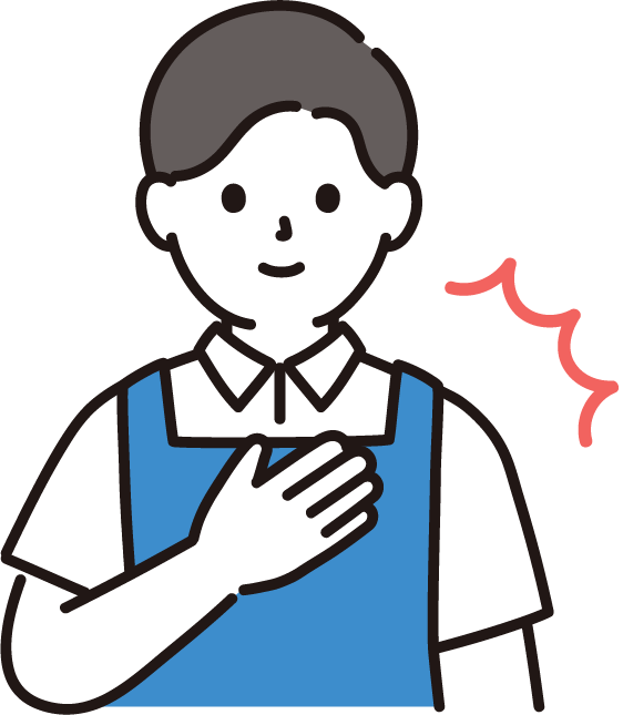 おまかせくださいのポーズをしている男性の介護士のイラストです。エプロン。