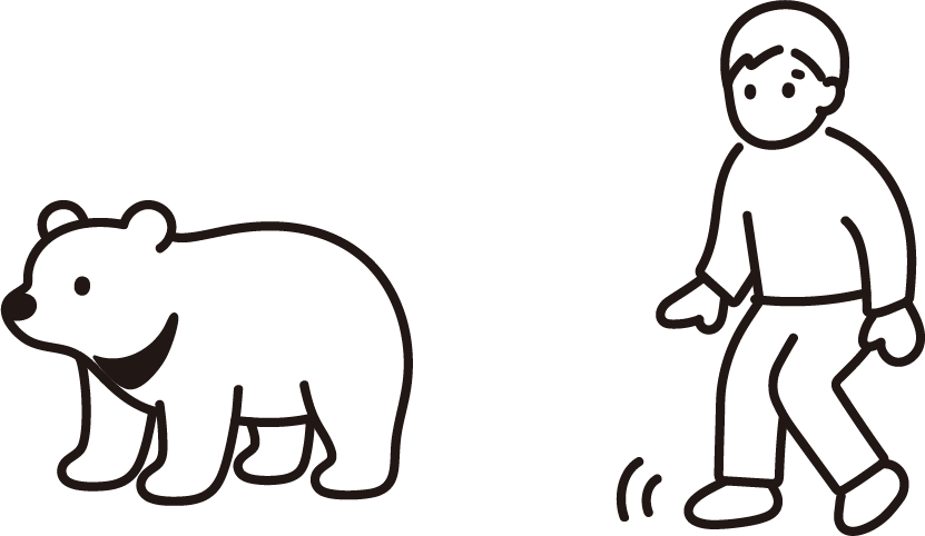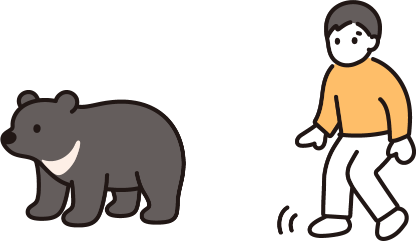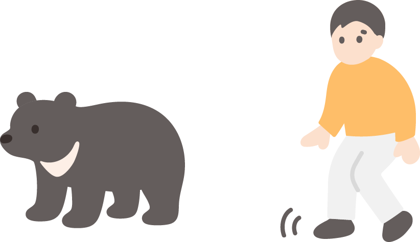 熊を見つけて、後ずさりする人のイラストです。くま、クマ。
