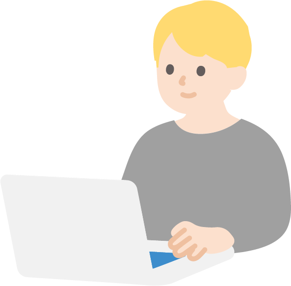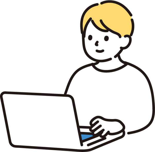 パソコンを使う大学生(男性)のイラスト