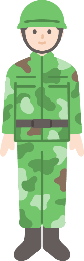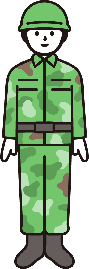 迷彩柄の作業服を着た自衛隊の男性のイラストです。