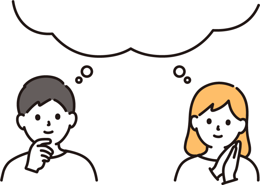 笑顔で何かを思い浮かべている男女のイラストです。頭の上に大きな吹き出し(ふきだし)。