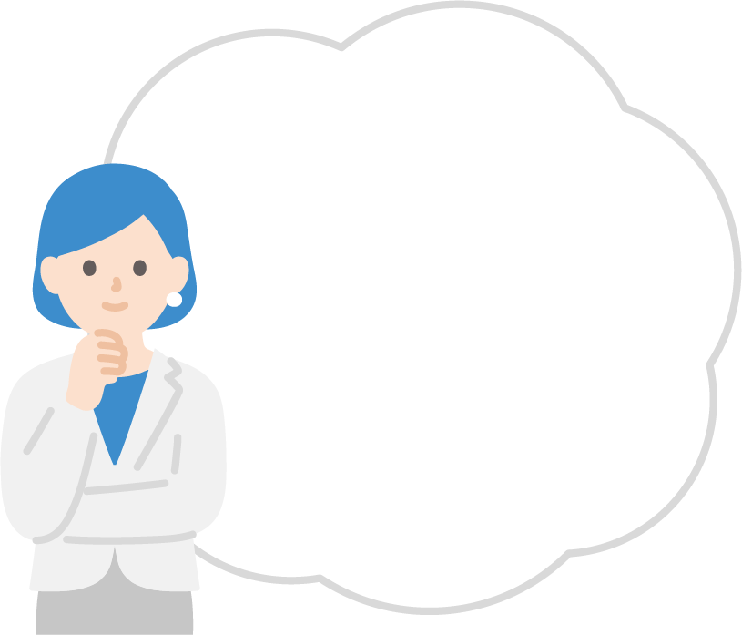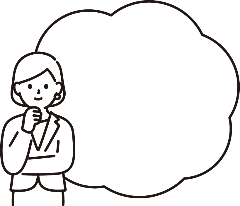 笑顔で何かを思い浮かべている女性のビジネスパーソンのイラストです。横に大きな吹き出し(ふきだし)。