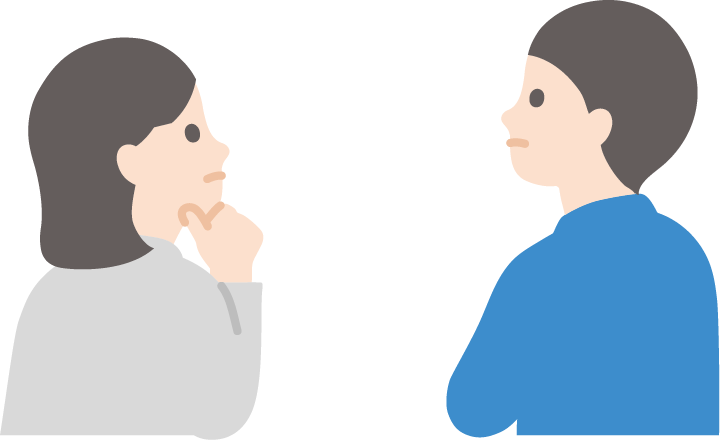考えたり悩んだりしている男女2人の後ろ姿のイラストです。