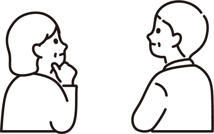考えたり悩んだりしているシニア2人の後ろ姿のイラストです。