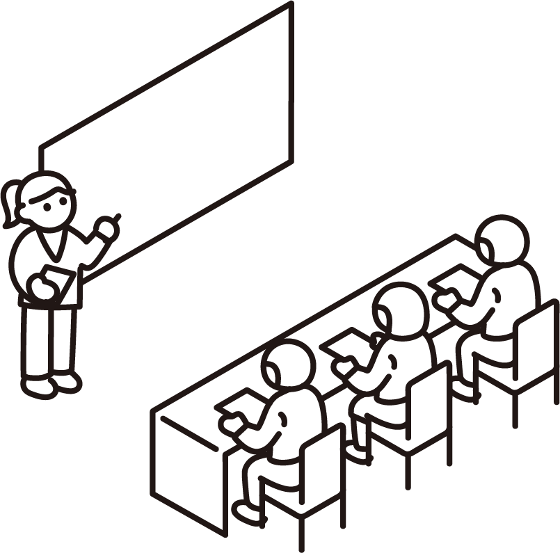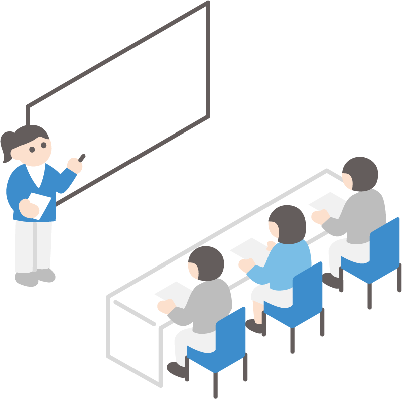 企業説明会やセミナーのアイソメトリックイラストです。(司会が女性バージョン)