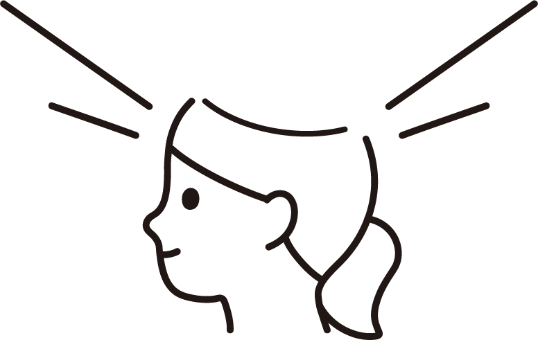 頭の上部が開いた、笑顔の女性のイラストです。思考、発想、想像、ひらめきなどのイメージ。