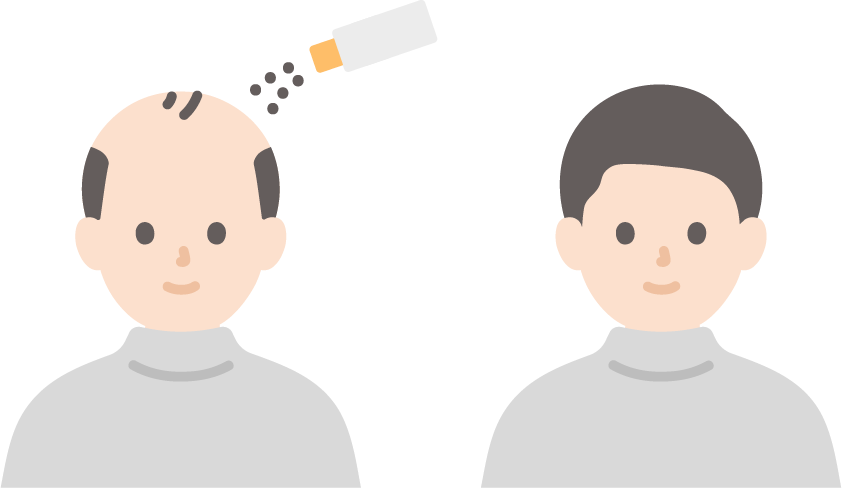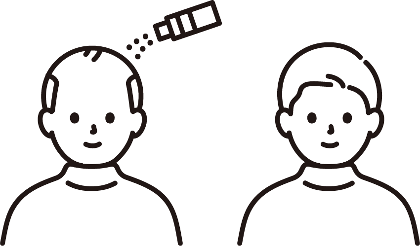 育毛剤を頭にかけて、髪のボリュームがアップしている比較のイラストです。